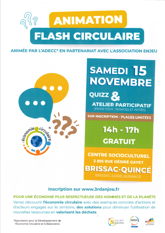 Animation proposée par l’Adecc en partenariat avec Enjeu et les 3 R d’Anjou. Ouvert à tous dès 18 ans.
