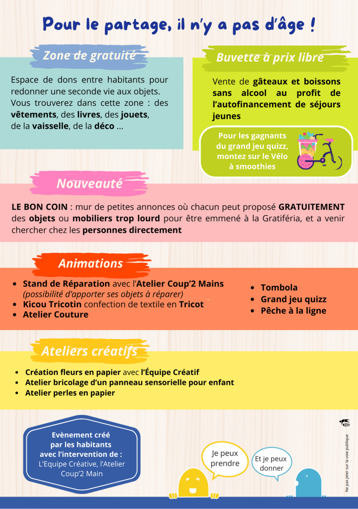 Collecte des dons d’objets ou vêtements propres, en bon état et transportables à la main le mercredi 26 février de 9h à 12h, le jeudi 27 février de 14h à 18h et le vendredi 28 février de 16h à 19h au centre socioculturel Enjeu.