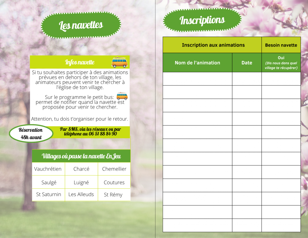 Il est possible de faire appel à la navette pour vous rendre à l’espace jeunes en appelant ou en envoyant un sms au 06.51.88.84.90.
